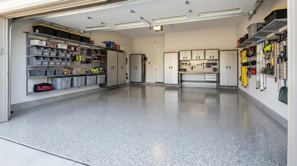 Professional installers schedule the application when concrete and ambient temperatures are stable. For polyurea and polyaspartic systems, temperature restrictions are minimal because the fast-cure chemistry hardens before outgassing can create visible bubbles. That’s one reason polyaspartic coatings produce smoother results than slower-curing epoxy in real-world garage conditions.